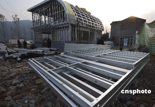一座被四川災(zāi)民稱為“最牛的抗震房”,春節(jié)前夕在地震受災(zāi)最重的北川縣永安鎮(zhèn)路邊崛起。