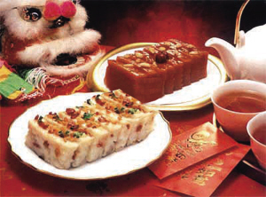 新加坡的年夜飯是千家萬戶都舉家圍坐,端出大盆年糕,大吃特吃。過年時,新加坡人愛吃油炸糯米和紅糖做成的甜年糕。當地人以“年糕”是“年高”之意,為新年祈禱祝福。