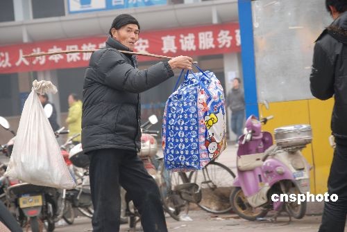 春節剛過,2月5日,江蘇鎮江很多民工又回到城里,“小候鳥”也跟著父母來到城里。中新社發 封波 攝
