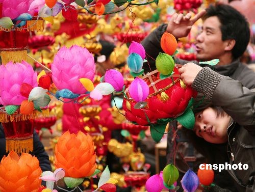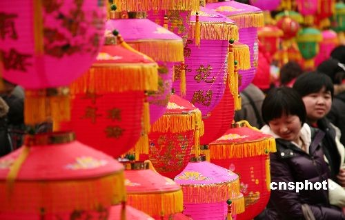 2月7日,市民在燈市上選購花燈。當日農歷正月十三,是一年一度的元宵節“上燈日”,南京夫子廟花燈市場生意紅火,五彩繽紛、樣式各異的花燈吸引眾市民爭相選購。