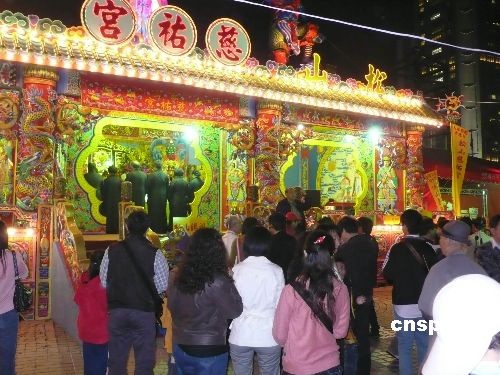 臺北元宵燈會開場,松山慈佑宮設立的燈區吸引了大量民眾前來上香,為新年祈禱。中新社發 路梅 攝