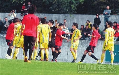 近乎荒誕的“賭球”讓成足與川足兩兄弟更像是賭氣。于是乎曾經在一棟樓里朝夕相處的汪嵩、劉成、徐洋、干穎波、劉宇形同路人,好幾次幾人之間的對話都亮出了鞋底鞋釘。拉扯,拉扯到了將場邊的替補席撞得人仰馬翻;飛鏟,飛鏟到場上的草皮飛濺。這是足球么?球迷似乎都沒有思考這樣的問題,只是不斷地嘀咕著:“太狠了!”