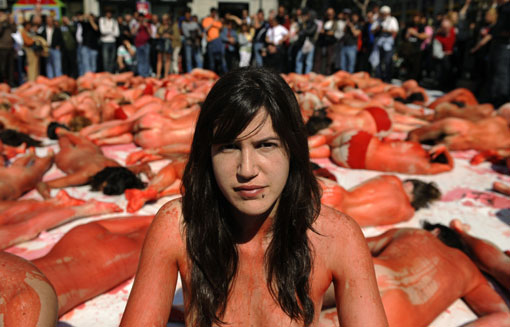 圖:動(dòng)物保護(hù)組織成員裸身抗議捕獵海豹