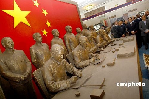 圖為“十七條協議簽字儀式場景”雕塑吸引眾多駐華使節的目光。