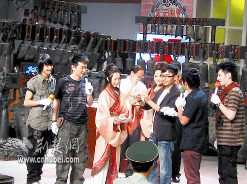 19日,在湖北出土的六件重量級文物——越王勾踐劍、曾侯乙編鐘以及雙耳金杯等,一齊亮相湖南衛視的熱播欄目《天天向上》的錄播現場。汪涵、歐弟、田源、錢楓和韓國明星小五,以其一貫的幽默、活潑的主持風格,把沉重靜謐的文物活靈活現地推介給了電視觀眾。