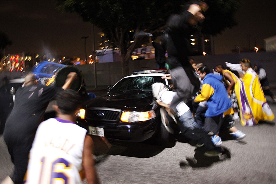 在洛杉磯湖人隊(duì)15日奪得本年度NBA總冠軍后,洛杉磯球迷涌上街頭歡慶勝利,但在慶祝過(guò)程中偶發(fā)暴力事件,警方逮捕了至少8人。