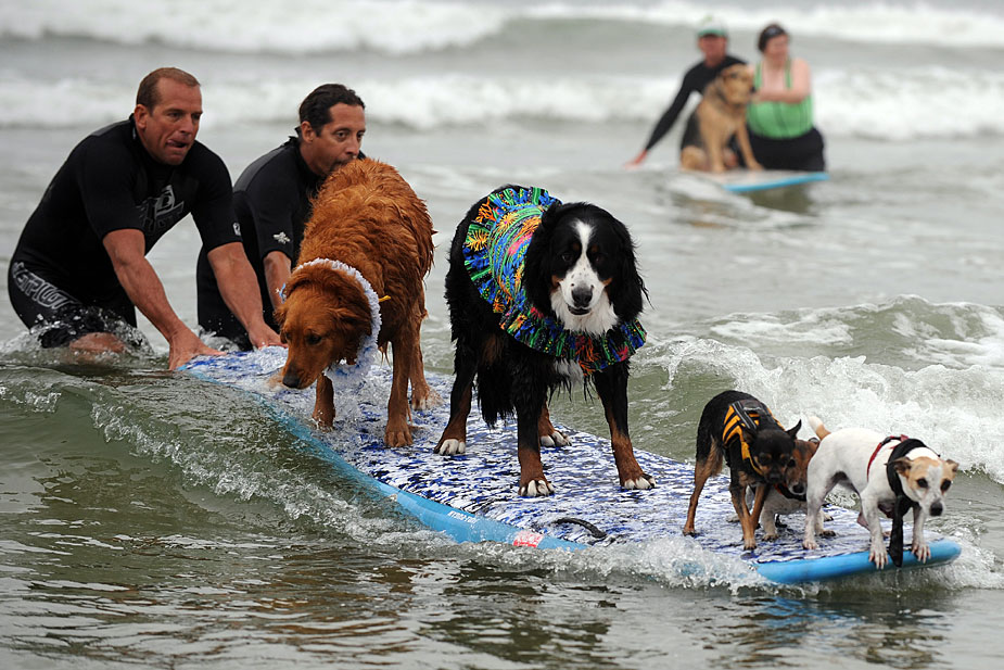 6月20日,在美國加利福尼亞州帝國沙灘舉行了一場小狗沖浪比賽,小狗們表現(xiàn)得十分認真。