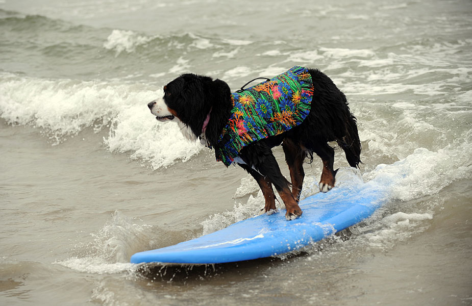 小狗沖浪比賽 讓人忍俊不禁