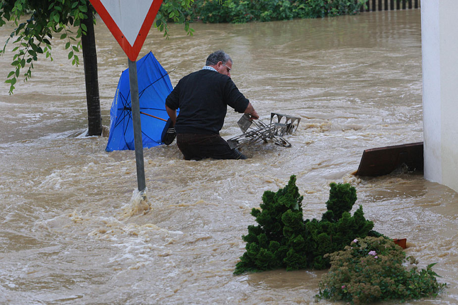 6月24日,奧地利部分地區由于連日降雨發生洪災。當地消防人員緊急出動,用各種工具將災民運往安全地帶。