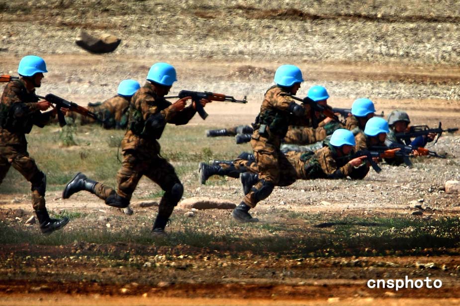 7月3日,中國和蒙古首次舉行維和聯合軍事訓練,以執行聯合國框架下維和任務為背景,在北京地區某訓練場開展多種綜合演練。中新社發 宋吉河 攝