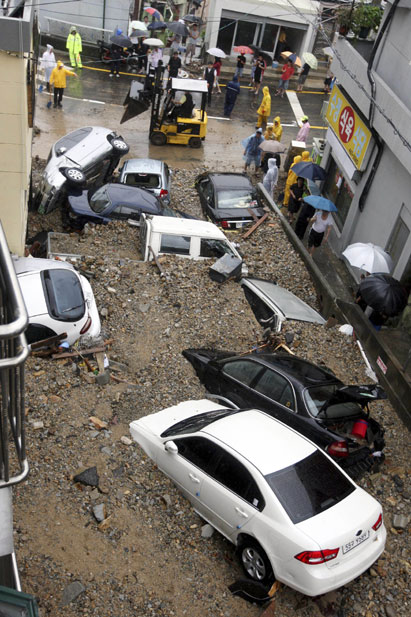高清圖:韓國釜山暴雨引發泥石流