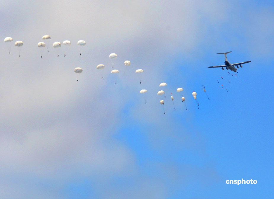 中國、俄羅斯兩軍總參謀長,7月23日上午到沈陽軍區洮南合同戰術訓練基地,觀看“和平使命2009”聯合反恐軍事演習。雙方以陸軍和空軍為主,中方參演部隊包括1個陸軍戰斗群和1個空軍戰斗群。俄方參演兵力包括1個陸軍加強摩步營、1個空降突擊連和部分空軍兵力,雙方投入兵力兩千多人。中新社發 宋吉河 攝