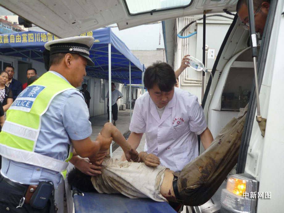 25日凌晨四點鐘左右,汶川縣境內(nèi)國道二一三線徹底關(guān)大橋被山上飛下來的巨石砸斷,已造成100米的橋面坍塌,7輛汽車受損,12人不同程度受傷,3人死亡,都汶路通行中斷。圖為汶川縣人民醫(yī)院正在積極搶救傷員。 汶新 攝