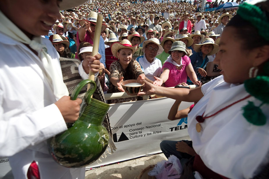 7月27日,墨西哥瓦哈卡舉行“蓋拉蓋查”傳統節日慶典。該節又叫“互相贈與”節,是一個展現印第安部落文化、分享部落間土特產的大型節日慶典。
