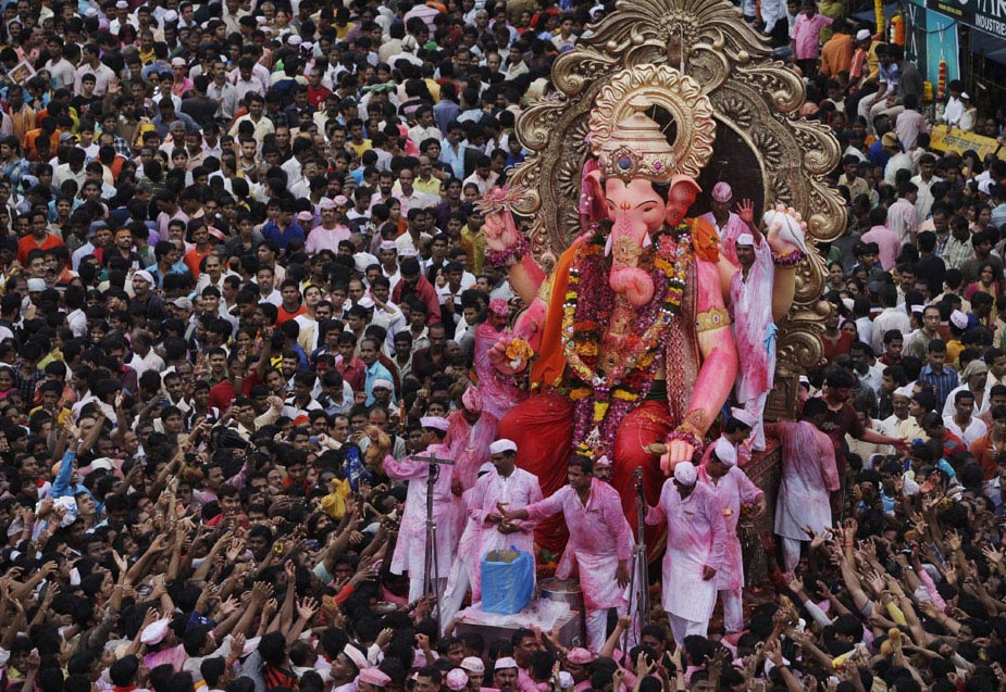 9月3日,印度各地的印度教教徒舉行盛大的儀式慶祝象頭神節。象頭神節是印度重要的宗教節日之一。圖片來源:中國新聞網