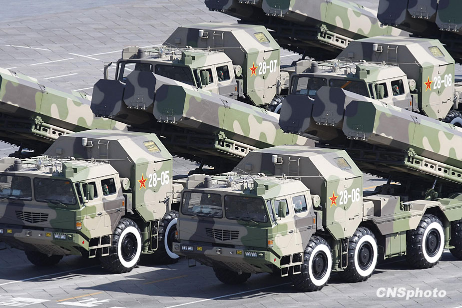 2009年10月1日,中華人民共和國成立60周年慶祝大會(huì)在北京舉行。圖為新型地地導(dǎo)彈方隊(duì)通過天安門廣場。