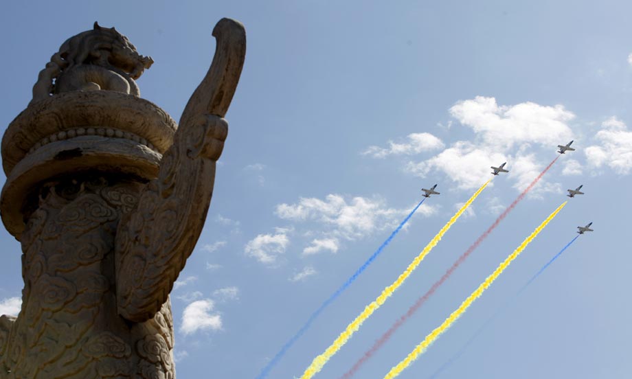 2009年10月1日,首都各界慶祝中華人民共和國成立60周年大會在北京舉行。空中方隊在北京上空駛過。