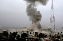 巴格達市中心25日發(fā)生兩起汽車炸彈爆炸事件,爆炸發(fā)生在早晨上班高峰時間,死亡人數(shù)不斷攀升,已超過百人。來源:中國新聞網(wǎng)