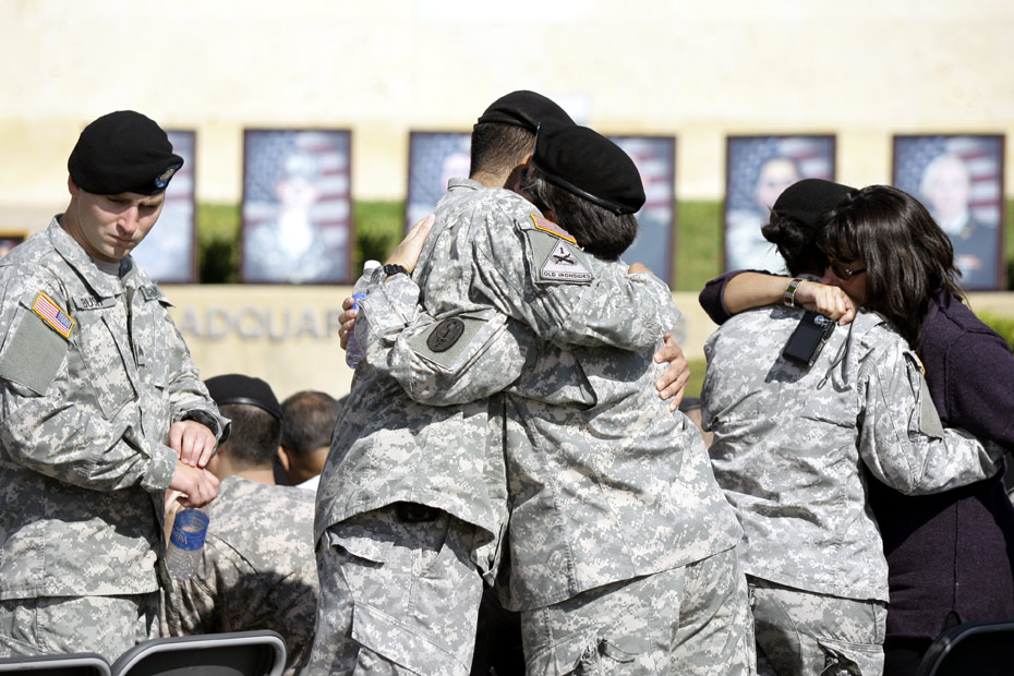 2009年11月10日,美國(guó)德克薩斯州胡德堡陸軍基地舉行儀式悼念槍擊案遇難者。 圖片來(lái)源:中國(guó)新聞網(wǎng)