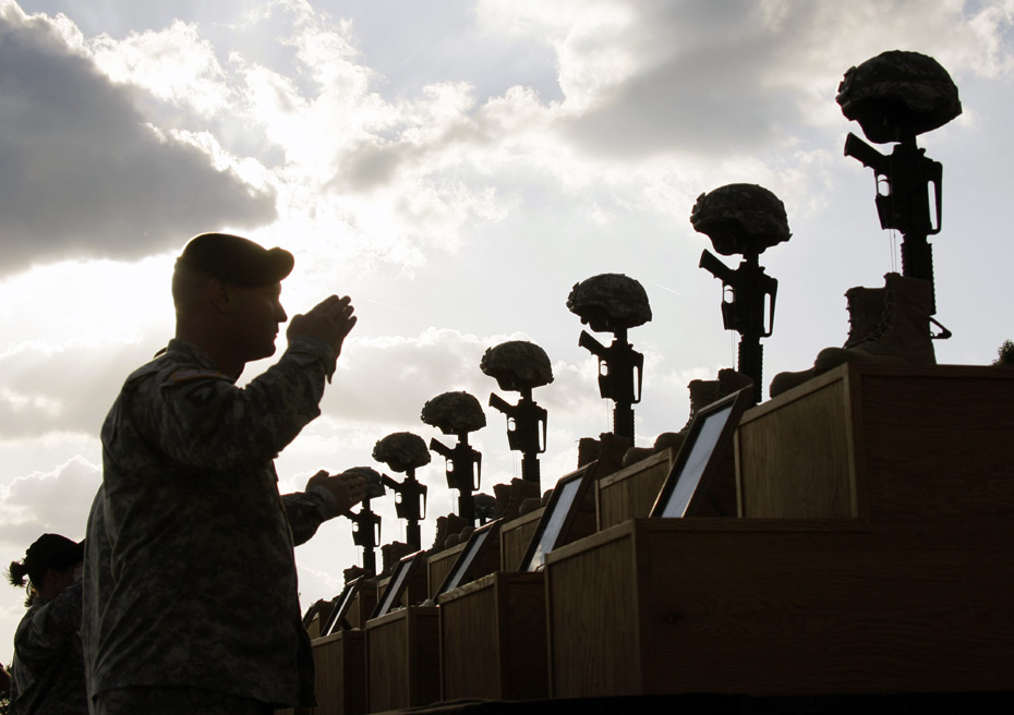 2009年11月10日,美國德克薩斯州胡德堡陸軍基地舉行儀式悼念槍擊案遇難者。 圖片來源:中國新聞網(wǎng)
