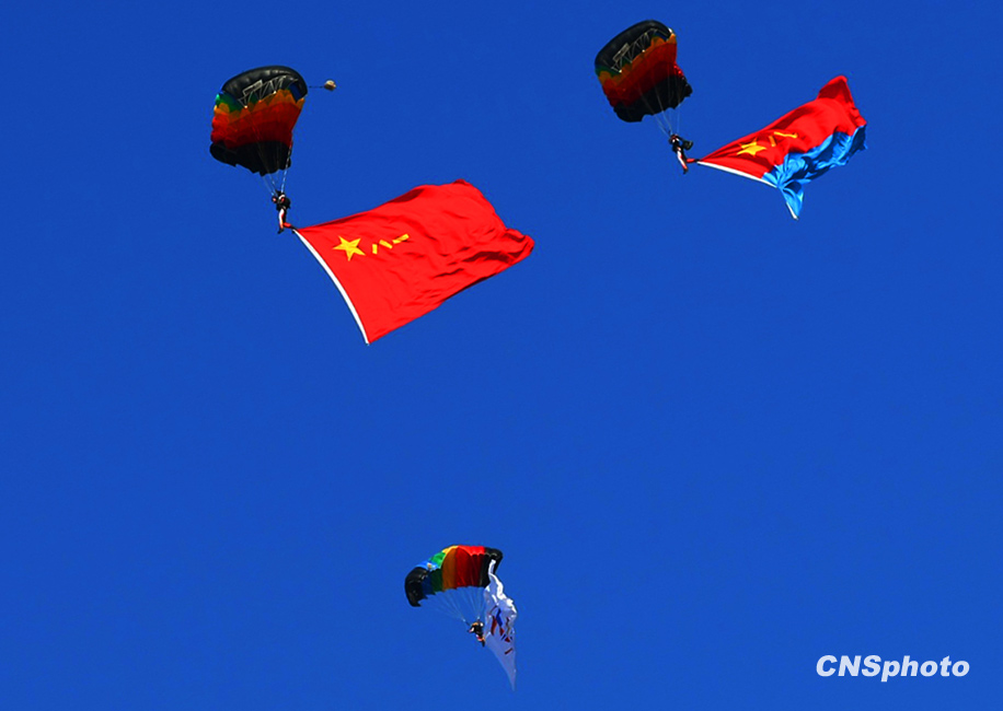 慶祝中國人民解放軍空軍成立60周年飛行跳傘表演,11月15日上午在北京沙河機場舉行。