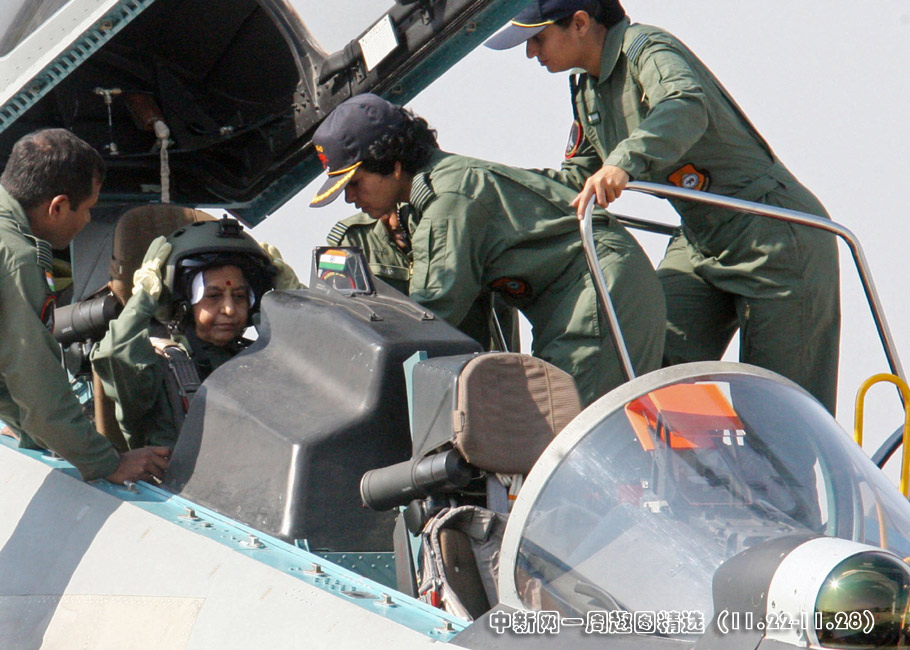 11月25日,74歲的印度女總統(tǒng)帕蒂爾在印度孟買附近的馬哈拉施特拉邦浦那地區(qū)的洛黑岡空軍基地,乘印度最先進(jìn)的蘇-30戰(zhàn)斗機(jī)飛上藍(lán)天,這是她首次乘坐戰(zhàn)斗機(jī)。圖片來(lái)源:中國(guó)新聞網(wǎng)>>點(diǎn)擊觀看詳細(xì)內(nèi)容
