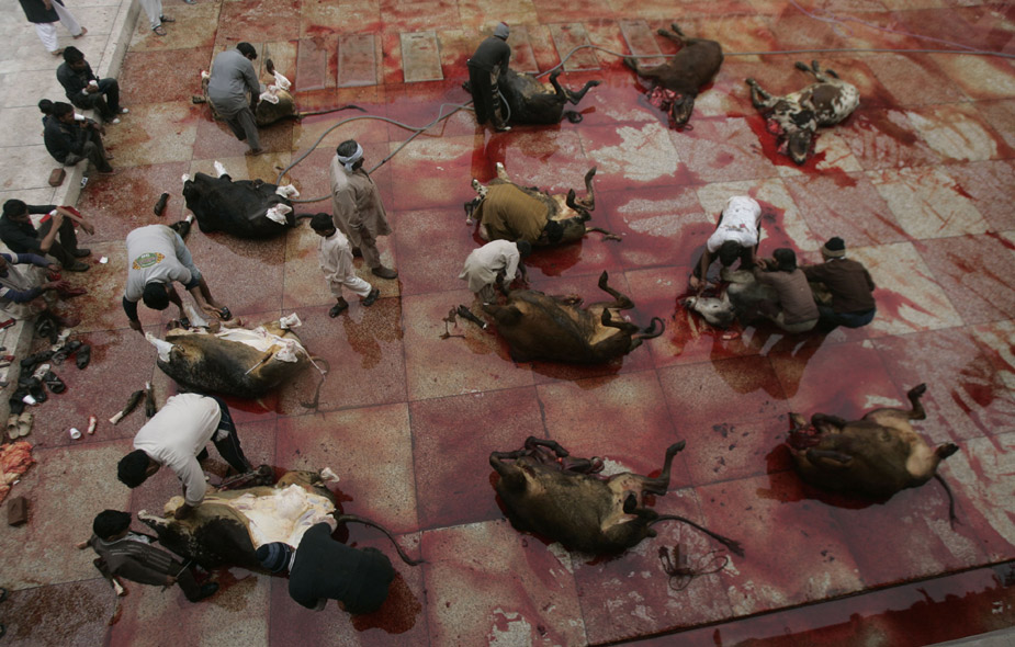 11月28日,世界各國的穆斯林迎來傳統節日“宰牲節”。圖為巴基斯坦的穆斯林在宰牲節上宰殺牲畜。