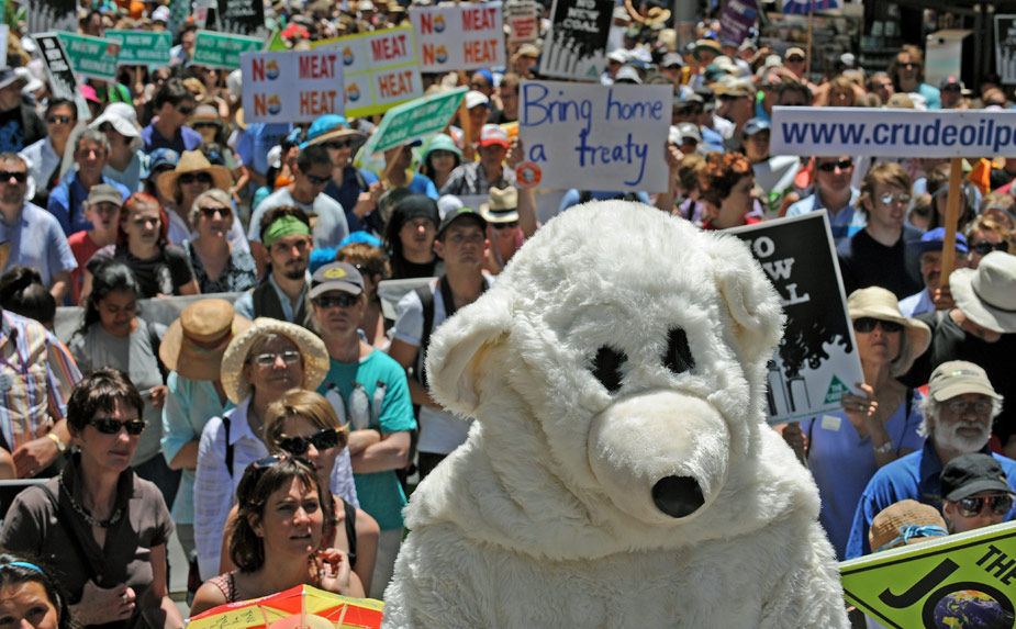 12月12日,澳大利亞的環(huán)保人士在悉尼舉行游行活動,以此呼吁關(guān)注氣候變化。