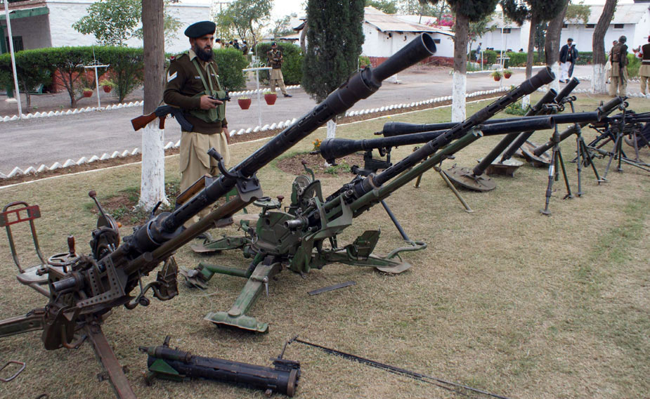 12月12日,在巴基斯坦西北部開(kāi)伯爾部落地區(qū),巴基斯坦軍方抓獲多名塔利班武裝分子,繳獲大量軍火。圖片來(lái)源:中國(guó)新聞網(wǎng)
