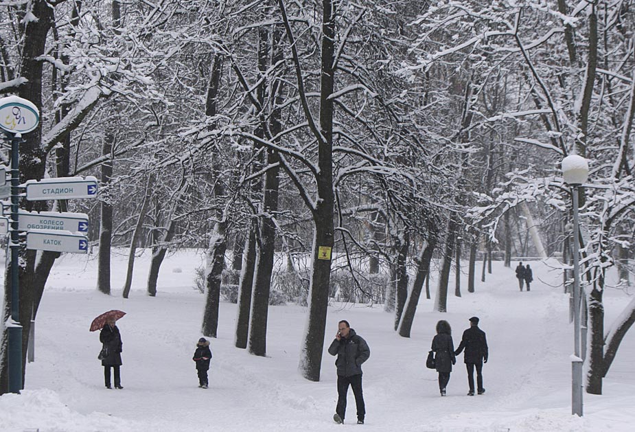 圖為12月29日,白俄羅斯首都明斯克大街上滿是積雪。
