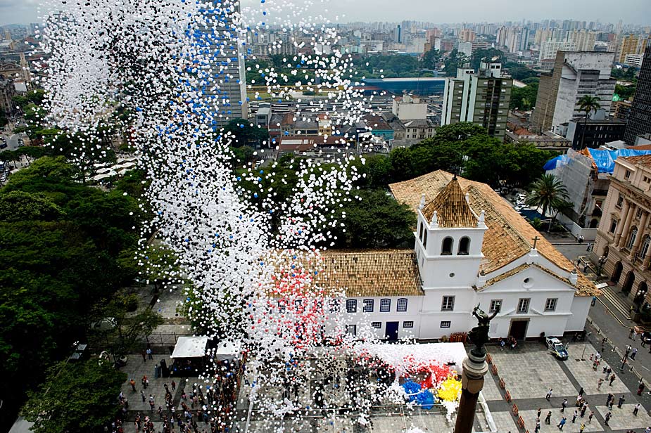 圖為12月31日,巴西人在圣保羅放飛可以分解的氣球,迎接新年的到來。