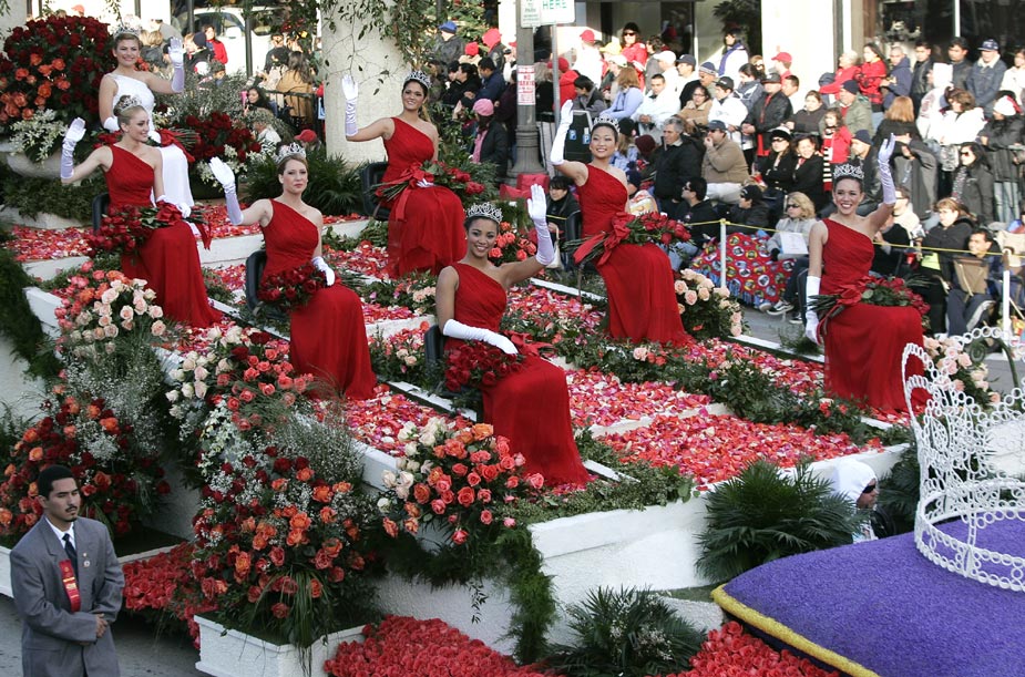 圖為美國(guó)第121屆玫瑰花車(chē)大游行現(xiàn)場(chǎng)。