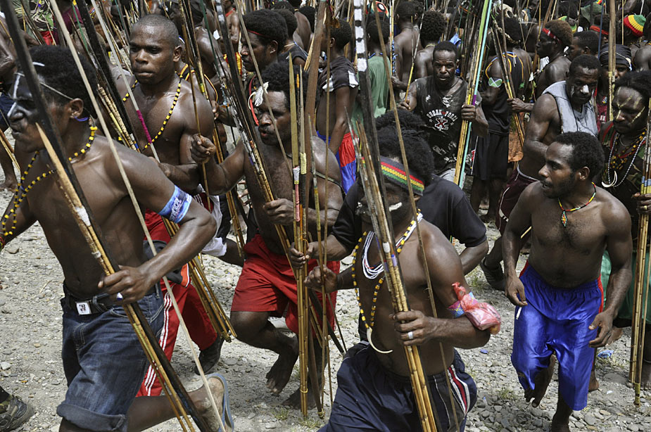 1月6日,印尼巴布省的兩個村落因債務問題引發了武裝爭斗,雙方手持弓箭等原始武器進行了一場原始的戰爭。目前,這場沖突已經造成多人傷亡。圖片來源:中國新聞網
