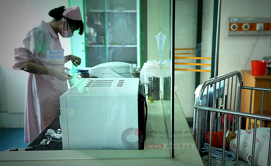 1月15日,小振和一個人安靜地躺在醫院的小床上,一旁的護士正在忙碌。瀟湘晨報 記者 楊抒懷 攝