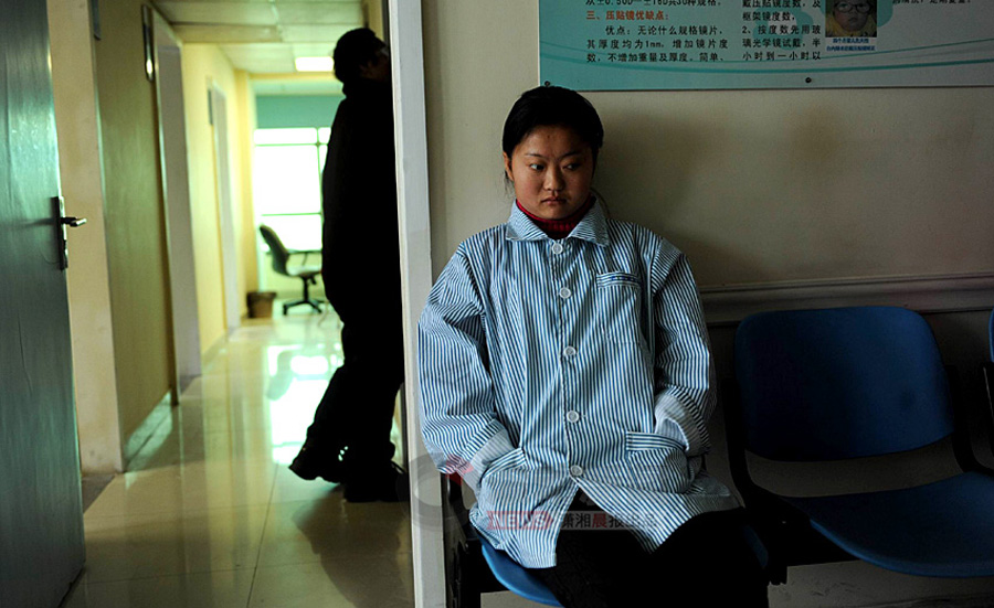 1月22日上午8點(diǎn),武漢愛爾眼科醫(yī)院。21歲的周霞眼神呆滯,坐在走廊等待術(shù)前的最后一次檢查,她顯得有點(diǎn)忐忑不安。瀟湘晨報(bào) 記者 楊抒懷 攝