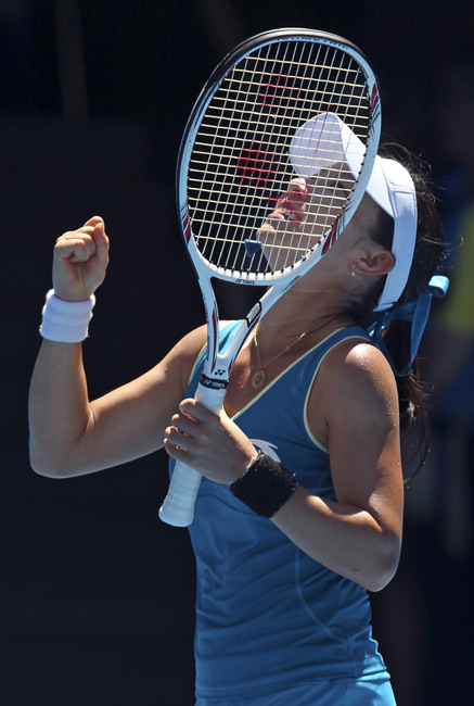 在26日上午進行的澳大利亞網球公開賽中,鄭潔直落兩盤橫掃俄羅斯好手基里連科躋身四強,刷新了個人澳網最佳紀錄。 圖片來源:中國新聞網