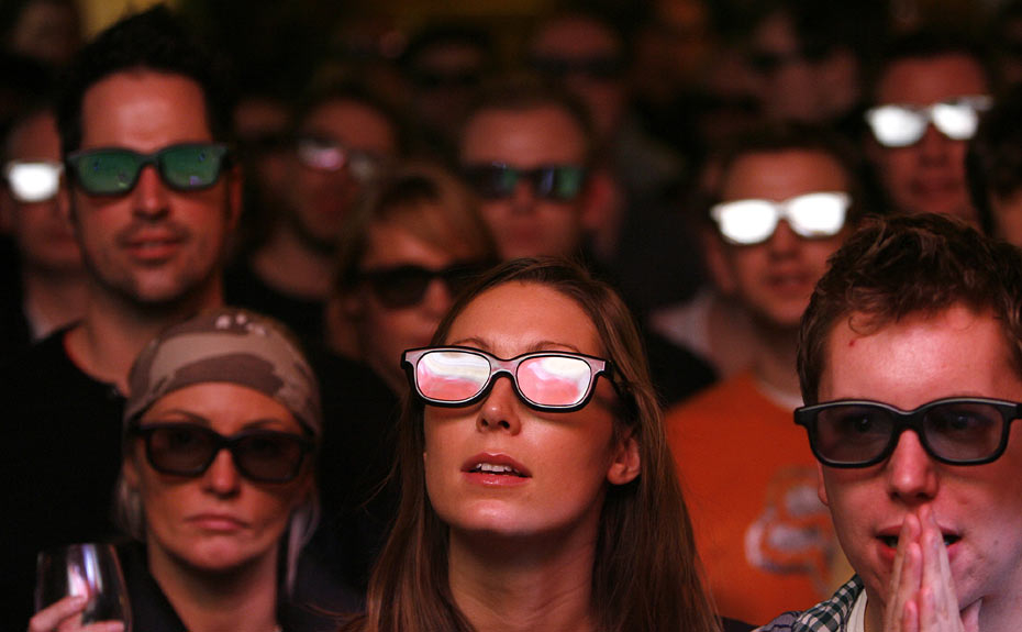 圖為球迷在倫敦的酒吧里享受3D足球直播。北京時間2月1日,英國體育頻道首次使用3D技術(shù)對阿森納與曼聯(lián)的比賽進(jìn)行電視直播。據(jù)悉,今年南非世界杯也將進(jìn)行3D轉(zhuǎn)播。