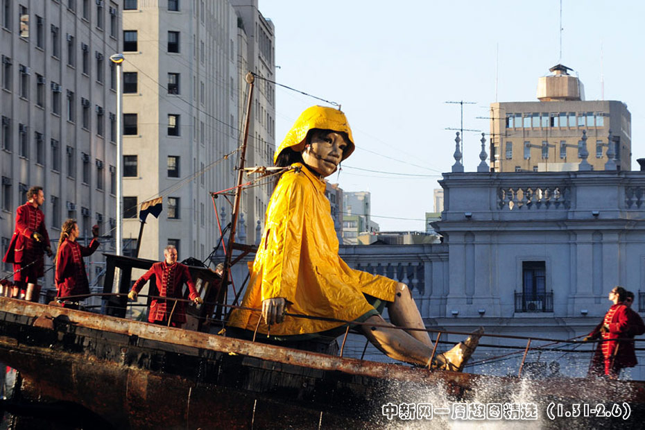 近日,智利首都圣地亞哥街頭,法國一劇團攜巨型提線木偶“小巨人”上街表演,它惟妙惟肖的表情和逼真的神態引得周圍觀眾的陣陣掌聲。圖片來源:中國新聞網>>點擊觀看詳細內容