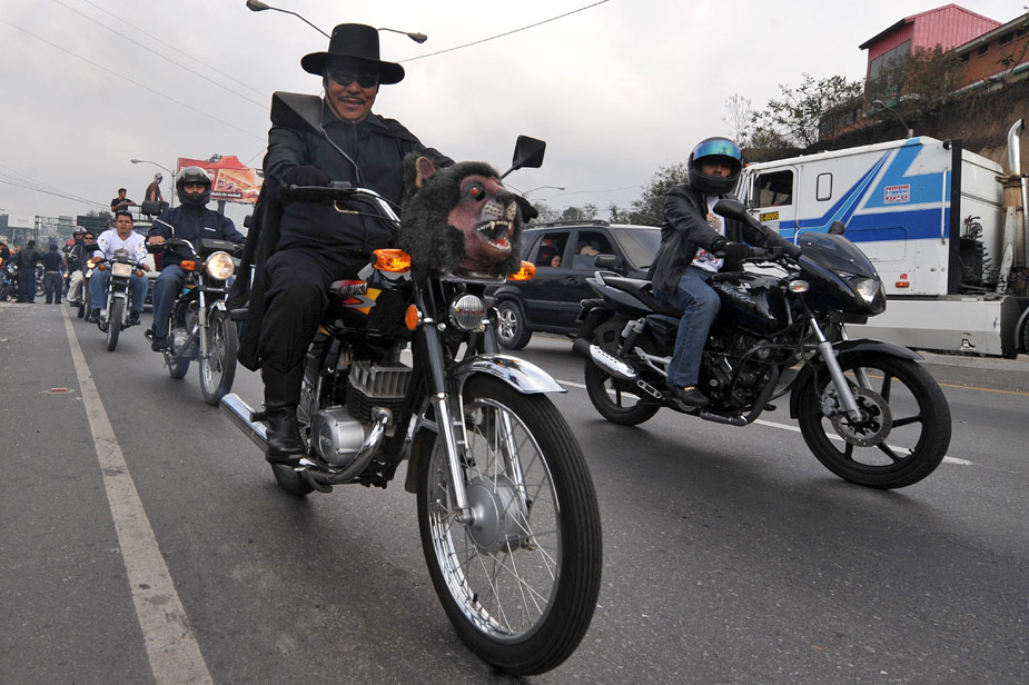 當地時間2月6日,在危地馬拉首都危地馬拉城,大約30000名摩托車手駕駛著機車在街頭游行。