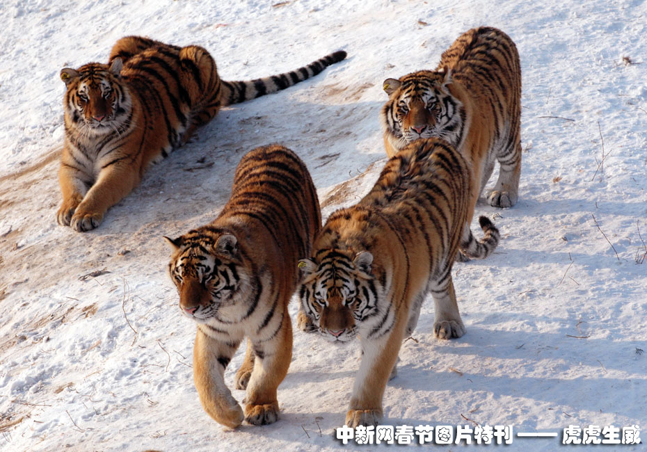1月13日,黑龍江東北虎林園,老虎在雪地中嬉戲追逐。(王少華 張書儉 攝) 圖片來源:中國新聞網
