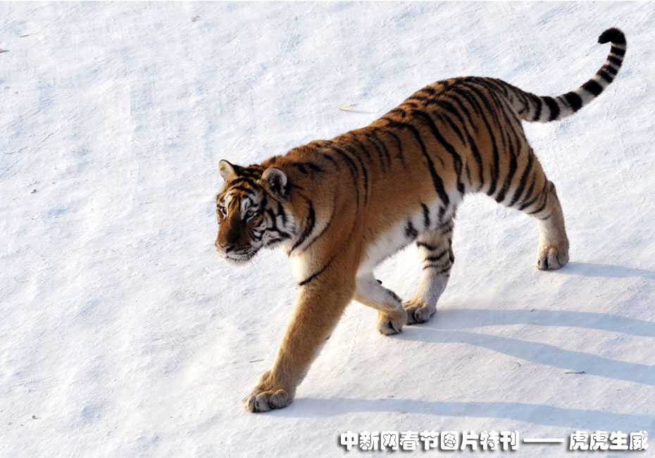 1月13日,黑龍江東北虎林園,老虎在雪地中嬉戲追逐。(王少華 張書儉 攝) 圖片來源:中國新聞網(wǎng)