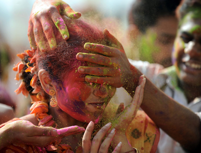 印度灑紅節 民眾互灑顏料送祝福