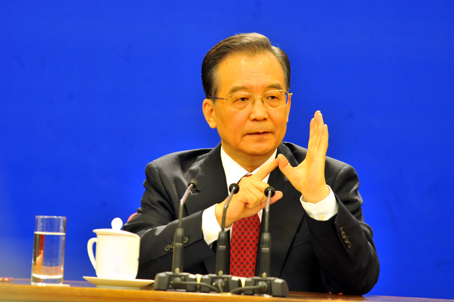 3月14日上午,國(guó)務(wù)院總理溫家寶在人民大會(huì)堂三樓金色大廳與采訪十一屆全國(guó)人大三次會(huì)議的中外記者見面并回答記者提出的問題。中新社記者 賈國(guó)榮 攝 圖片來(lái)源:中國(guó)新聞網(wǎng)