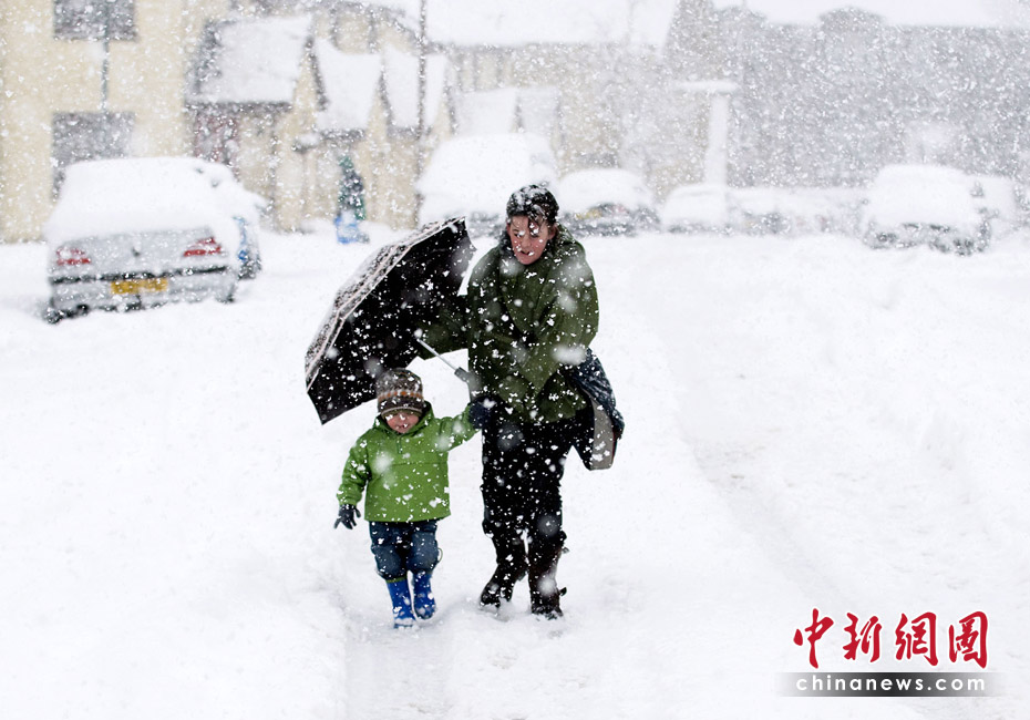 當地時間3月31日,英國北部部分地區遭暴風雪襲擊,導致數萬戶家庭斷電,有12名學生在惡劣天氣引發的交通事故中受傷。圖片來源:中國新聞網