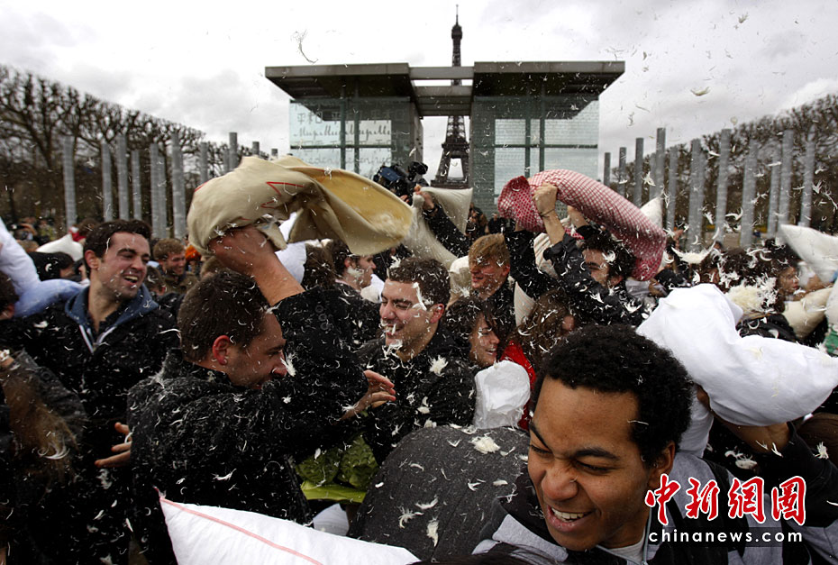 4月3日是國際“枕頭大戰”日。在這一天,多個國家的“枕頭大戰”愛好者相約走上街頭,用獨特的方式來慶祝他們的節日。圖片來源:中國新聞網