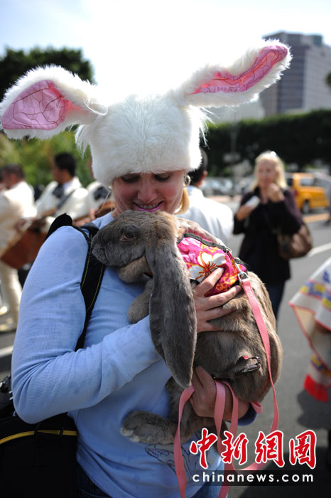 當地時間4月4日,美國洛杉磯人們在歡慶復活節的同時,也為他們的寵物舉行了祝福儀式。這項祝福儀式每年舉行一次。圖片來源:中國新聞網