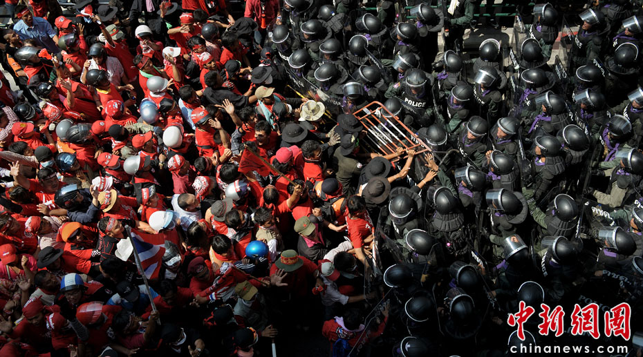 4月10日,泰國軍隊在首都曼谷對支持前總理他信的“紅衫軍”進(jìn)行武力驅(qū)散,雙方爆發(fā)嚴(yán)重沖突,目前已造成18人死亡,數(shù)百人受傷。圖片來源:中國新聞網(wǎng)