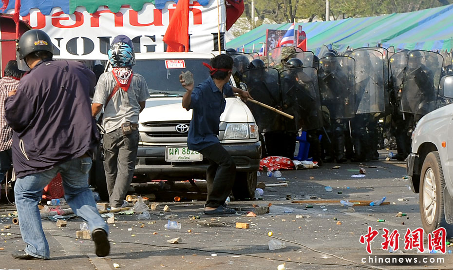 4月10日,泰國(guó)軍隊(duì)在首都曼谷對(duì)支持前總理他信的“紅衫軍”進(jìn)行武力驅(qū)散,雙方爆發(fā)嚴(yán)重沖突,目前已造成18人死亡,數(shù)百人受傷。圖片來(lái)源:中國(guó)新聞網(wǎng)