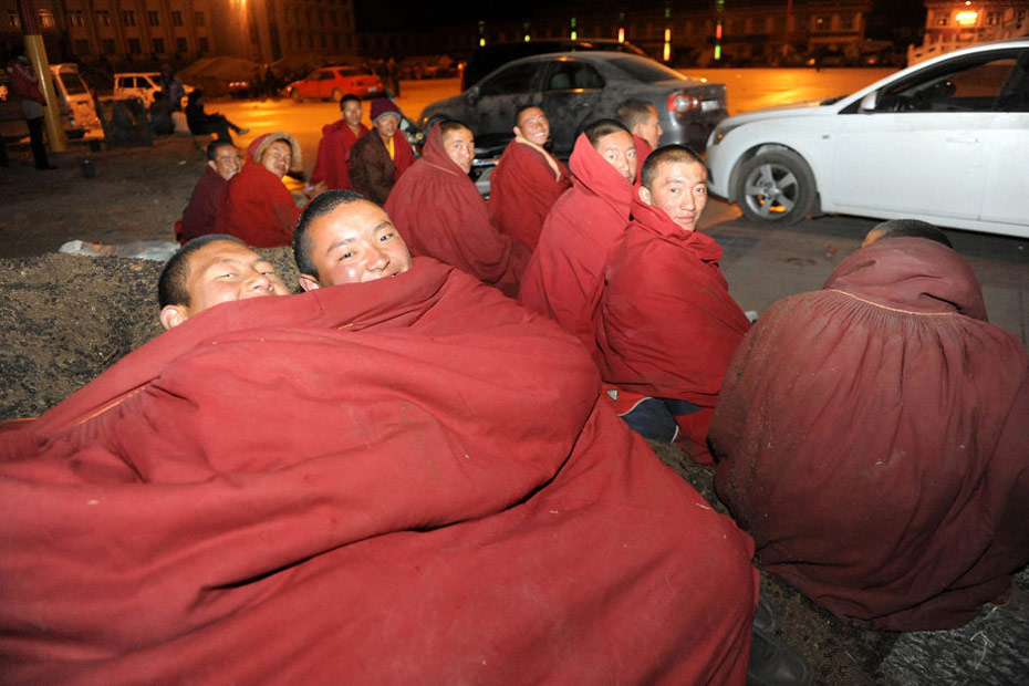 圖為4月15日夜,災區群眾在玉樹縣結古鎮中心廣場休息。 李紫恒 攝(新華網圖)