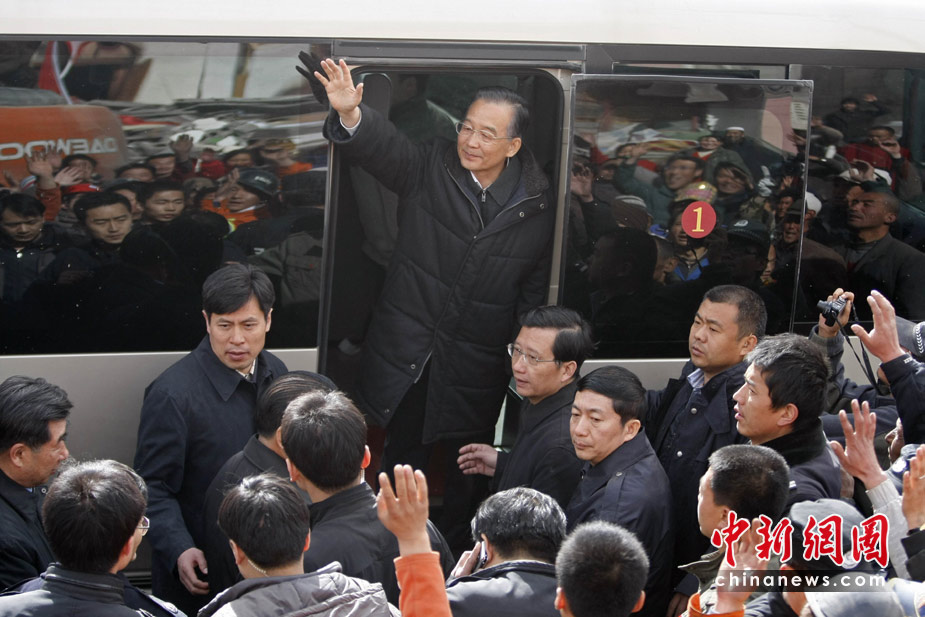 2010年4月16日,中國國務院總理溫家寶在青海省玉樹藏族自治州玉樹縣地震災區(qū)視察救援現(xiàn)場。4月14日07時49分許,青海省玉樹藏族自治州玉樹縣(北緯33.1,東經(jīng)96.7)發(fā)生7.1級地震。中新社發(fā) 盛佳鵬 攝